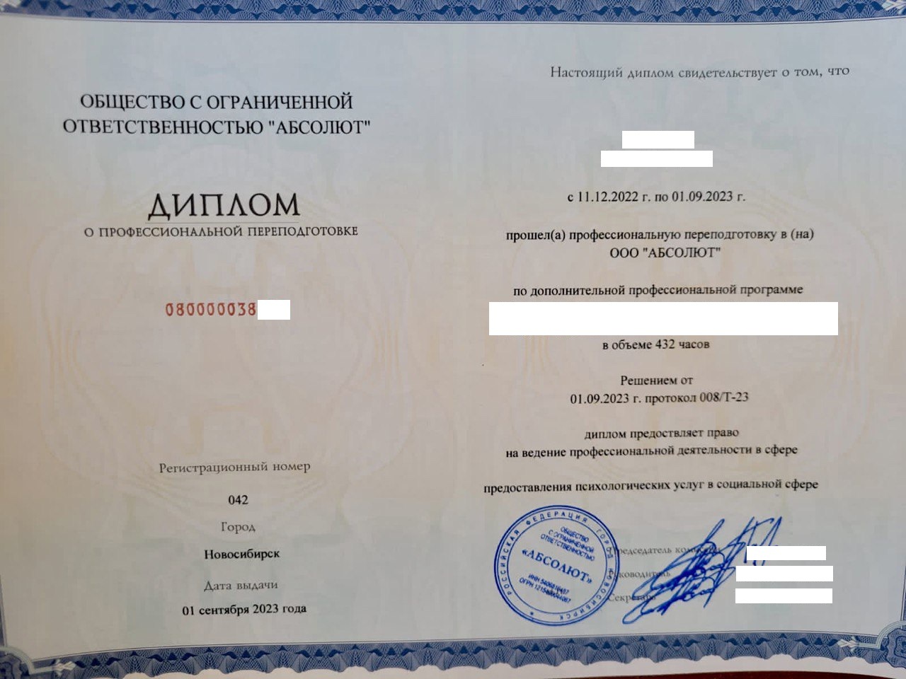 После прохождения курсов выдается диплом о профессиональной переподготовке или удостоверение о повышении квалификации установленного образца. Это официальный документ, который вносится в реестр ФИС ФРДО. Его можно проверить на сайте Рособрнадзора.